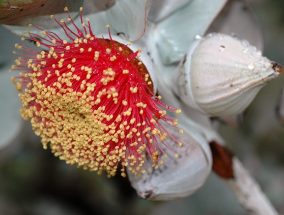 Growing Notes: Australian native small to medium-sized tree with lanceolate blue-grey foliage and flowers of pink or red that bloom in winter. A great shade tree suitable for coastal exposure. A great source of pollen for honey production