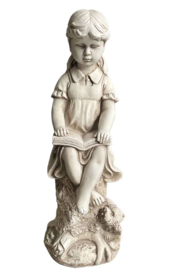 Girl with Dog on Stump Reading- Figurine