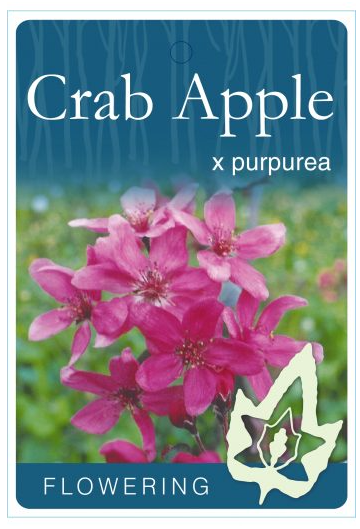 Single claret red flowers with yellow stamens. Blossom time is mid Spring, followed by dark red fruit which are excellent for Crab Apple Jelly.