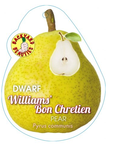 Medium size pear , that is green when picked, and famous for its yellow colour when ripe. It’s white flesh is soft, smooth and very juicy with a sweet flavour. Grows to a height of approximately 2 -2.5m at maturity.