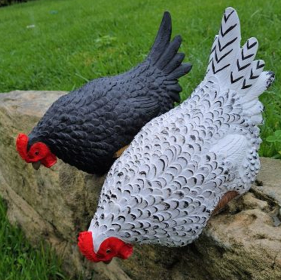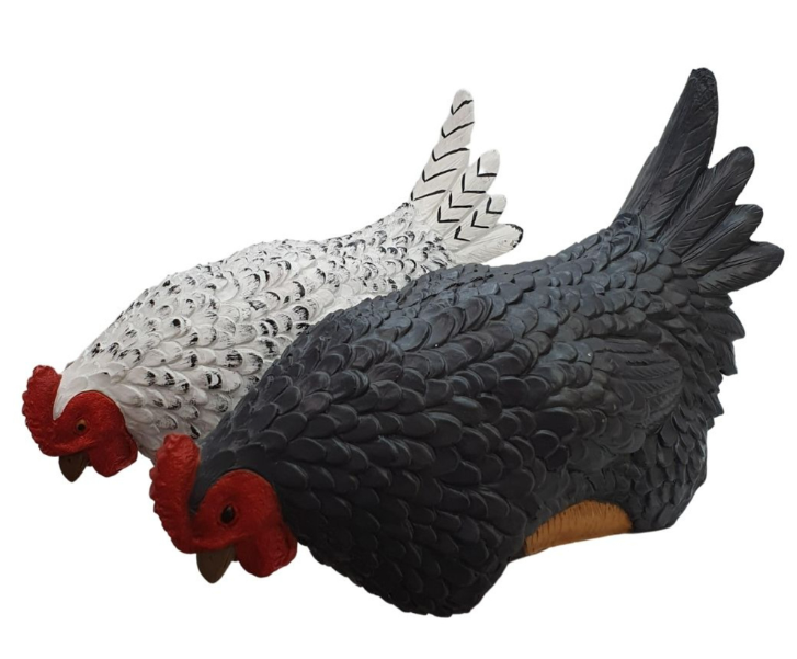 Polyresin hen (colours sold seperatly) designed to sit on a shelf or garden step.