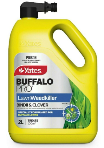 Suitable for use on buffalo lawns. DO NOT lift bottle by sprayer, always use handle. DO NOT apply under windy conditions or if rain is expected within 24 hours. DO NOT apply to lawns suffering from moisture stress. DO NOT apply if shade temperatures are expected to exceed 30ºC within a 72 hour period.